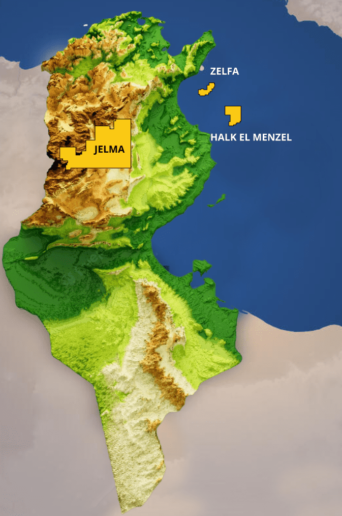 La première acquisition a eu lieu en 2001 avec une participation de 15 % (30 % de participation active) dans le champ terrestre « Jelma ». Le bloc est géré par ETAP, détenant une participation de 85%.